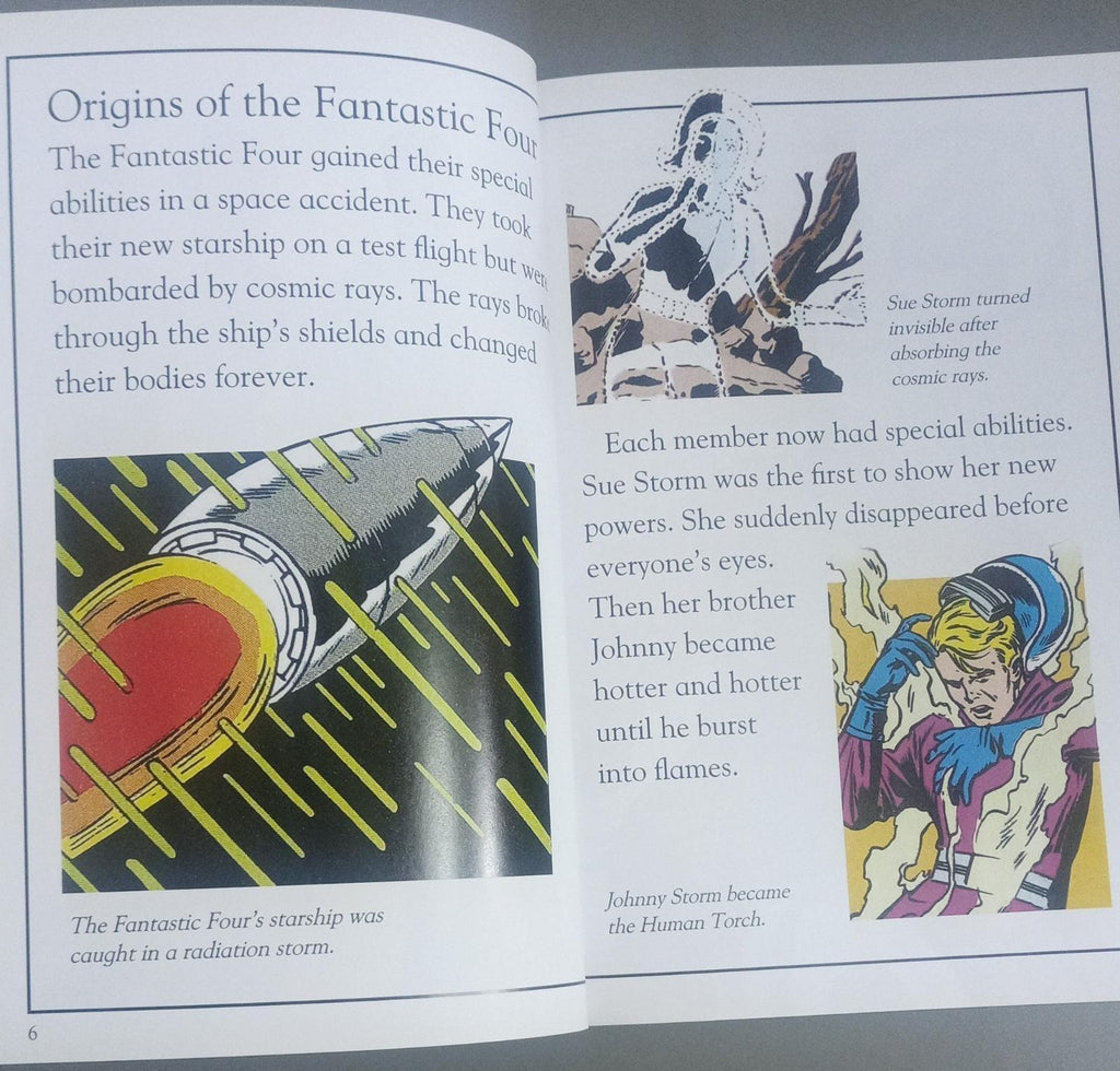 متعة رائعة مع Fantastic Four! هل تساءلت يومًا كيف حصل ريد على جسده المضاد للرصاص؟ كيف أصبحت سو ريتشاردز غير مرئية؟ أو كيف اشتعل جوني ستورم في شعلة بشرية؟ اكتشف كل ما تريد معرفته عن هذا الفريق الخارق - بدءًا من كيفية حصولهم على قواهم المذهلة وحتى معداتهم الرائعة وأعدائهم الأشرار: Doctor Doom وPuppet Master وPsycho-Man والمزيد. إنها مليئة بصور الأبطال والأشرار المفضلين لديك، إنها قراءة خارج هذا العالم.