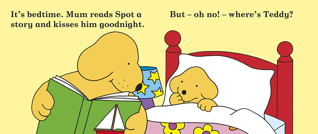 سبوت جاهز للدخول إلى السرير والنوم، لكنه لا يستطيع العثور على الدبدوب الخاص به! هذه القصة البسيطة والمطمئنة مثالية للمشاركة عند النوم.