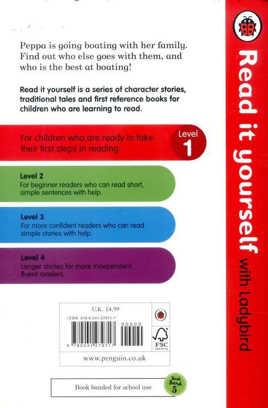 Peppa Pig - Going Boating هو كتاب من المستوى الأول اقرأه بنفسك، وهو مناسب للقراء الأوائل الذين هم على استعداد لاتخاذ خطواتهم الأولى في قراءة القصص الحقيقية. تستخدم كل قصة بسيطة عددًا صغيرًا من الكلمات المتكررة.