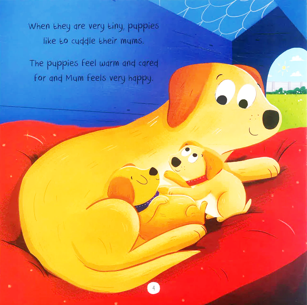 This book follows the story of the dog family as the puppies grow, but it provides lots of advice on behaviour for its human readers.