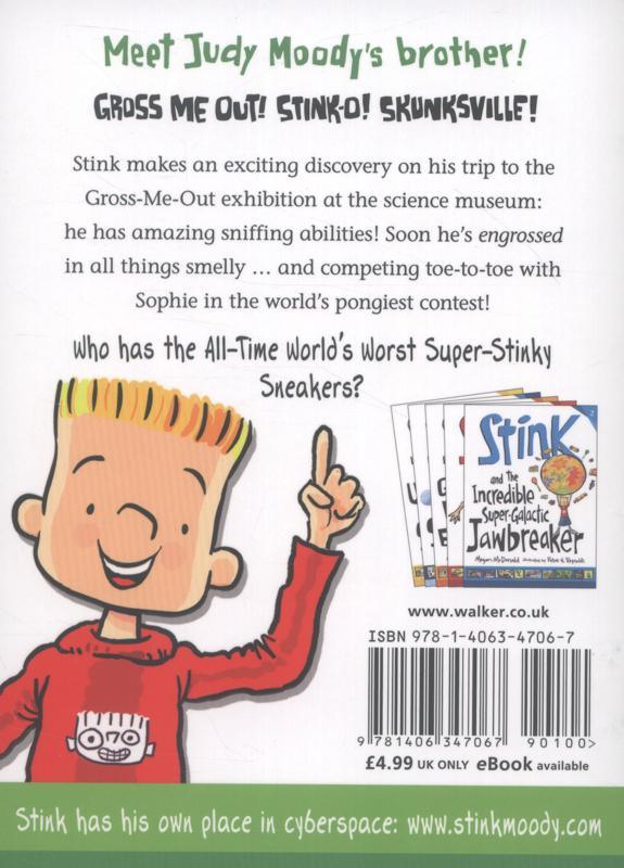 عندما يذهب فصله في رحلة ميدانية إلى معرض Gross-Me-Out في متحف العلوم، يكتشف Stink أن أنفه يتمتع بقدرات شم مذهلة. قبل مضي وقت طويل، كان مستعدًا للمنافسة من أخمص القدمين إلى أخمص القدمين في مسابقة الأحذية الرياضية الكريهة! هل ستكون أحذية Stink الرياضية كريهة بما يكفي للفوز بجائزة مشابك الغسيل الذهبية؟