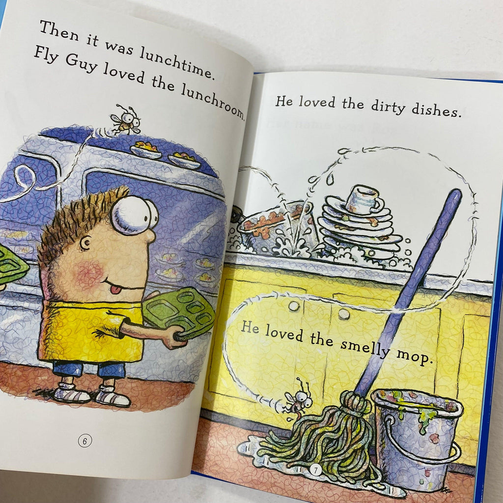 يحب Fly Guy غرفة الغداء المدرسية. ولكن عندما تكتشف سيدات الغداء أن هناك ذبابة في الكافتيريا، تعم الفوضى!
