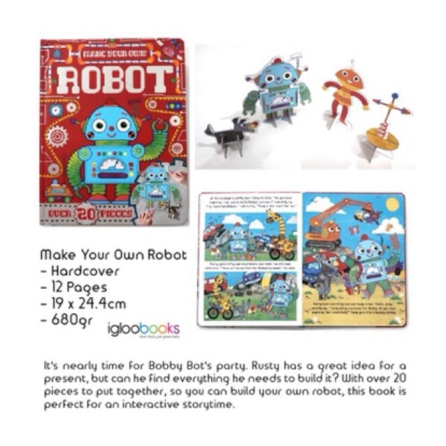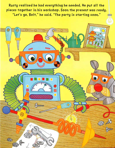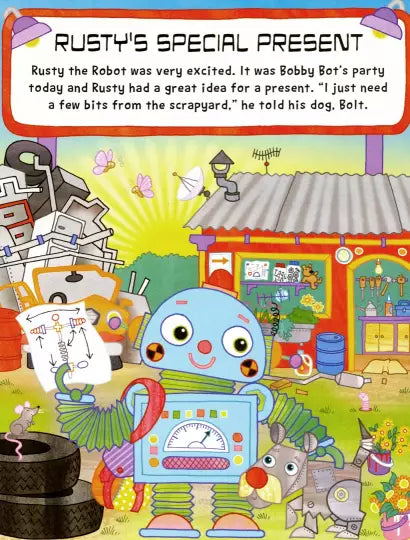 لقد اقترب وقت حفلة بوبي بوت. لدى Rusty فكرة رائعة عن هدية، ولكن هل يمكنه العثور على كل ما يحتاجه لبنائها؟ مع أكثر من 20 قطعة يمكن تجميعها معًا حتى تتمكن من بناء الروبوت الخاص بك، يعد هذا الكتاب مثاليًا لقصة تفاعلية.