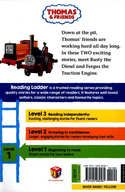 يتضمن هذا الكتاب قصتين عن أصدقاء توماس. في إحداهما نلتقي بفيرغس، محرك الجر الصغير وفي الأخرى، نقابل رستي، الذي يعمل بجد دائمًا.