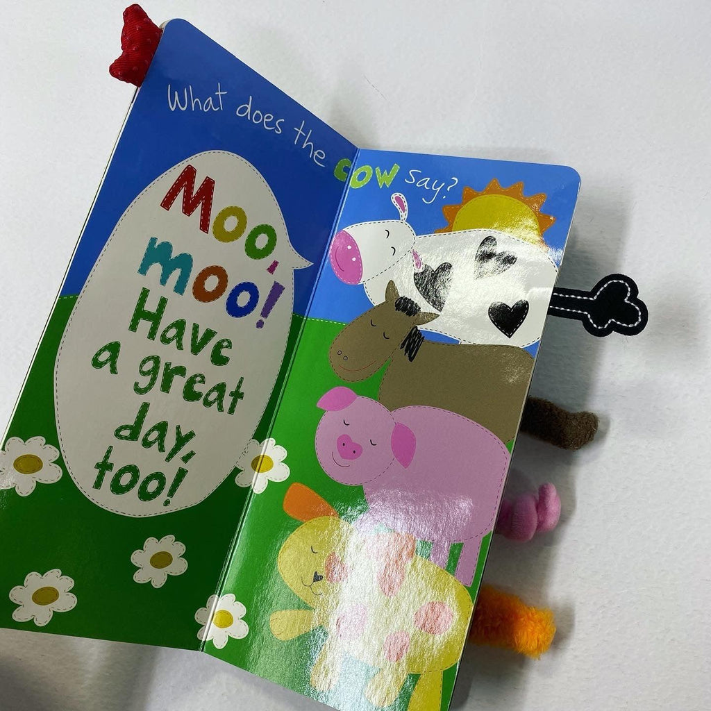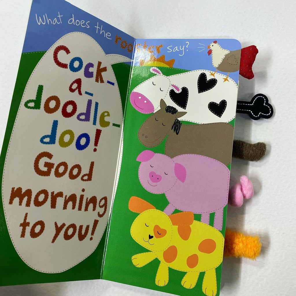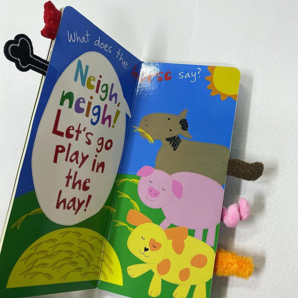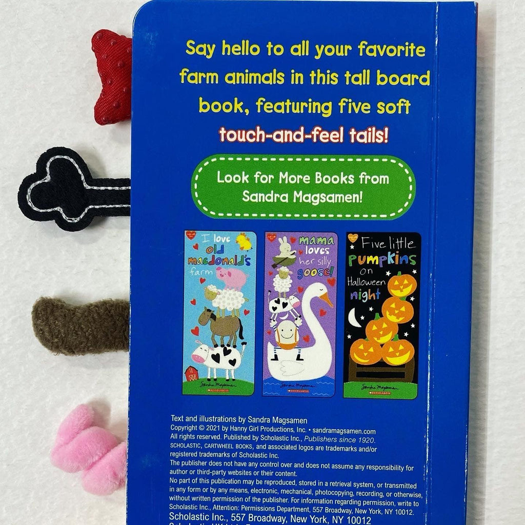 Cuddle up with your little one and this whimsical touch-and-feel tall board book! Babies and toddlers will love recognizing the call-and-response of their favorite farm animals and touching the soft, tactile tails that appear on every spread.