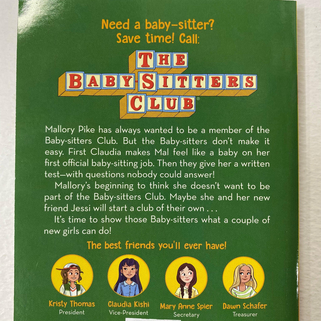 Mallory Pike has always wanted to be a member of the Baby-sitters Club. The Baby-sitters are so much fun to be around, and so grown-up. Now the club members have invited Mallory to a meeting. This might be her big chance!