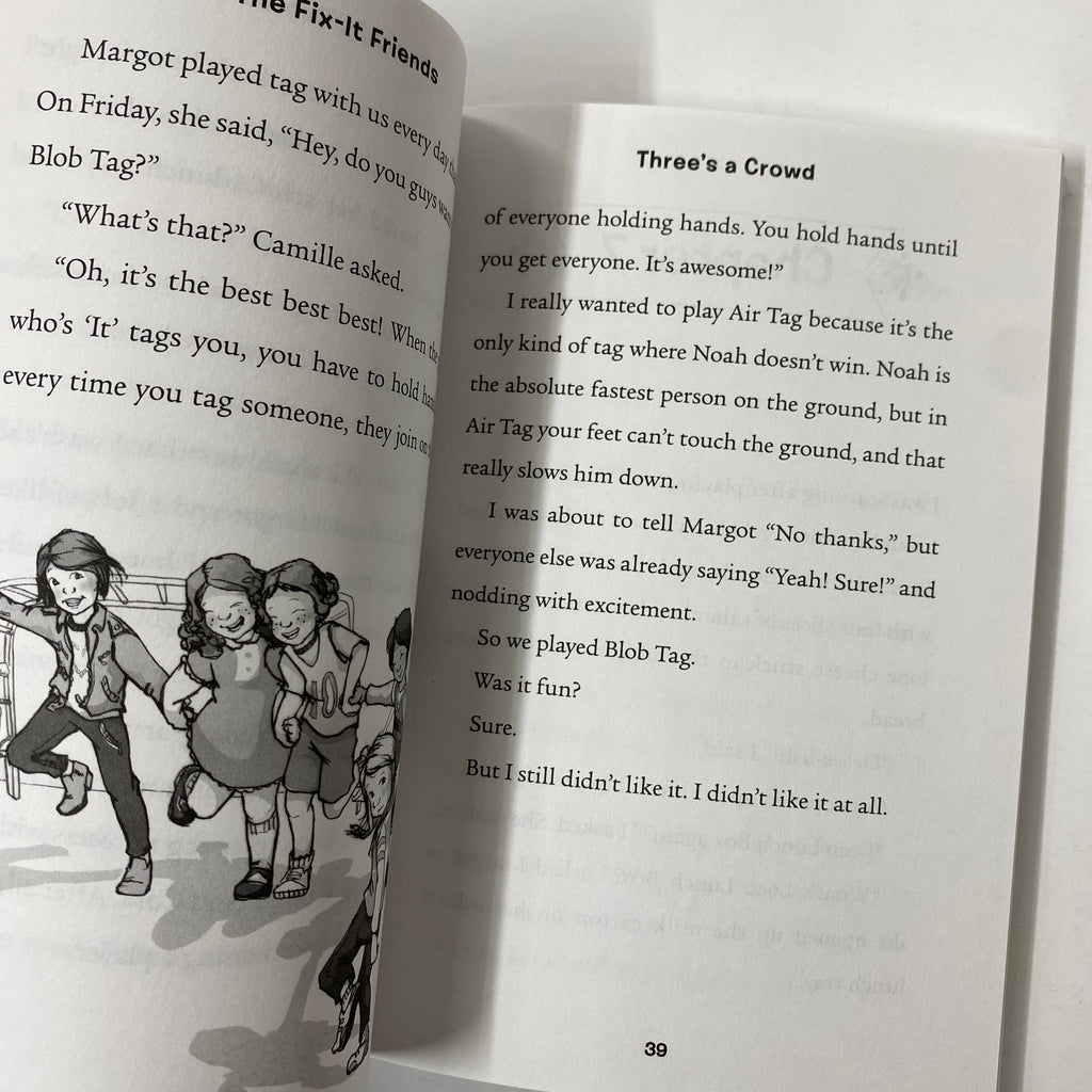 Three’s a Crowd is the sixth installment in this laugh-out-loud chapter book series starring a precocious and loveable heroine. It includes the Fix-It Friends Toolbox, filled with advice to handle changes in friendships.