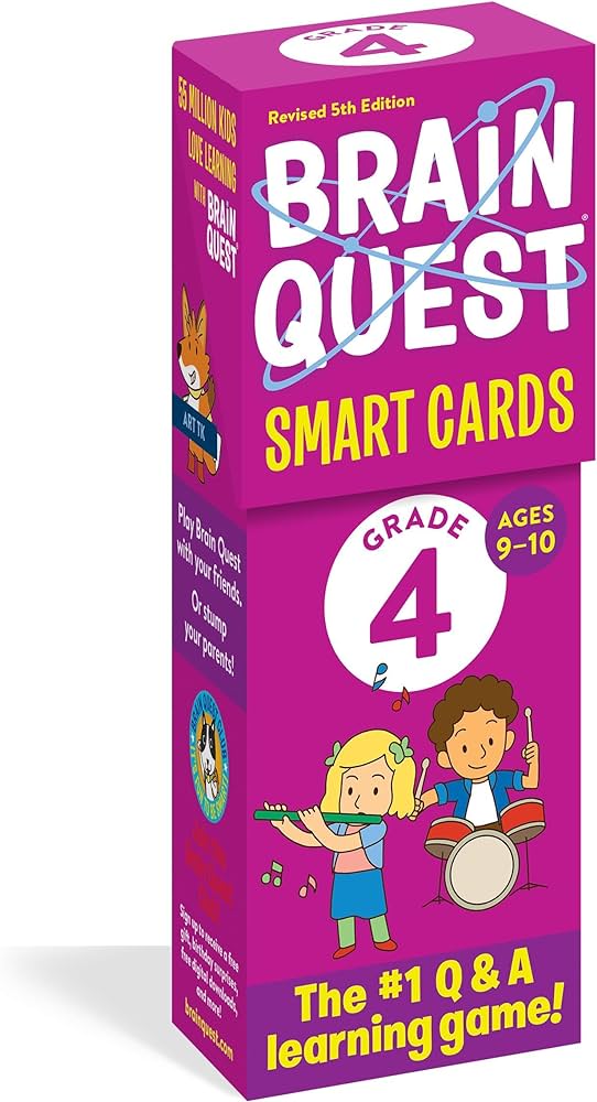 Brain Quest 4th Grade Smart Cards helps kids aged 9 – 10 to learn core classroom subjects in a smart, entertaining, and engaging way. It’s a Q&A game that fourth graders can play with friends, family, or against the clock to test their knowledge. Smart cards feature hundreds of questions with answers to help kids know exactly what they need to know, when they need to know it.