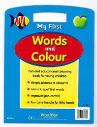 Fun and educational colouring book for young children. Simple pictures to colour in. Learn to spell first words. Improves pen control. Fun carry handle for little hands.