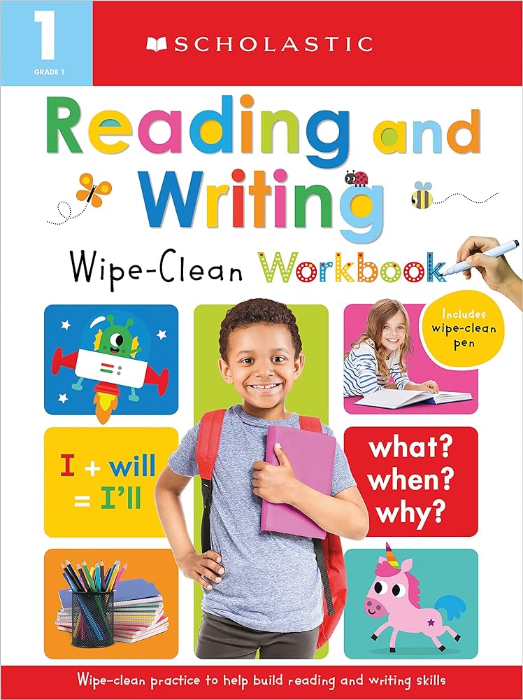 This interactive workbook boosts essential first-grade skills. Featuring pictures, shapes and patterns for children to trace, writing prompts, and early literacy skills, this wipe-clean workbook allows for repeated practice that will build future writing confidence and achievement.