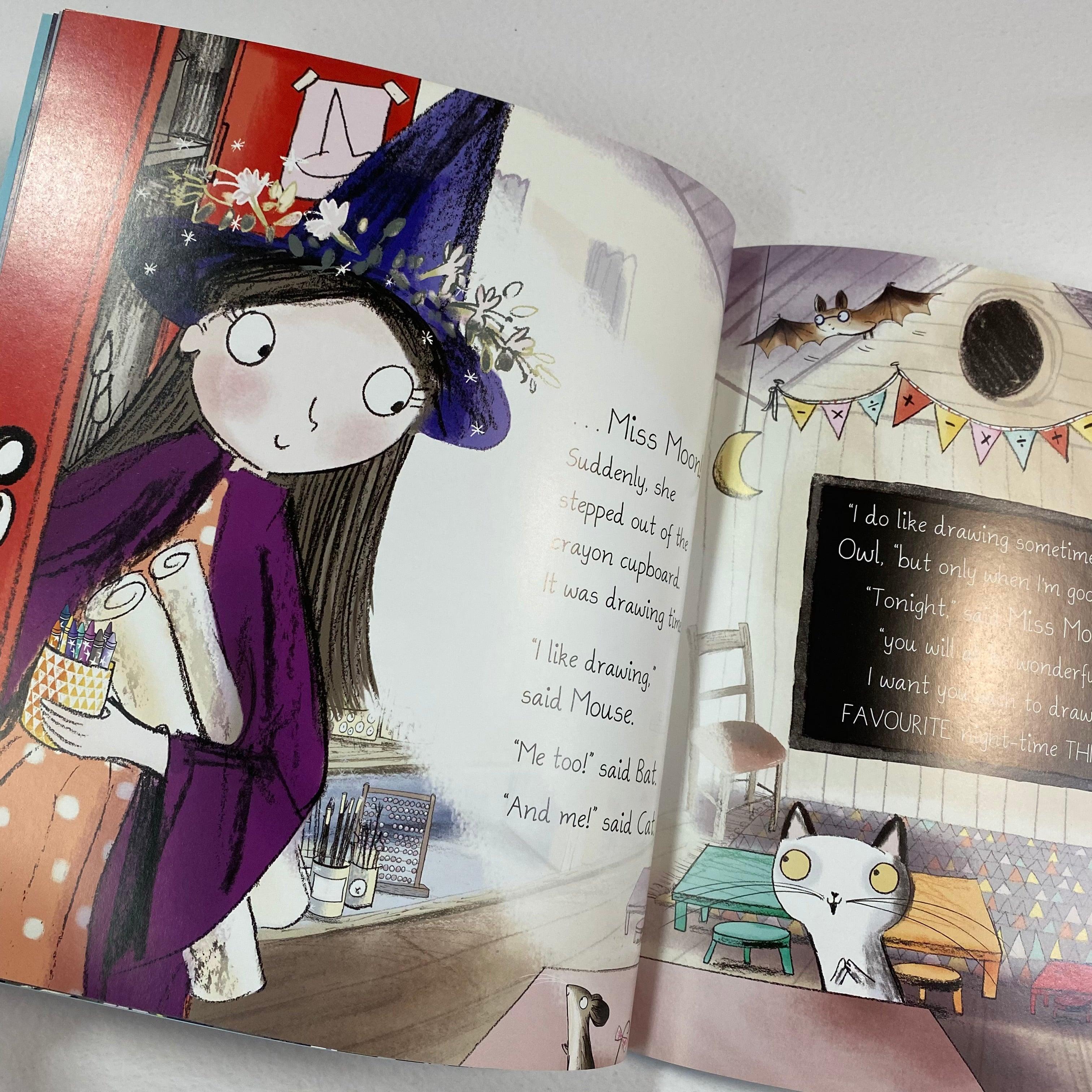 It's drawing time at Moonlight School and Miss Moon has asked all the creatures to draw their favourite night time thing. But when Cat, Bat and Mouse use all the night-time coloured crayons, what will Owl do? Whatever will he draw now?