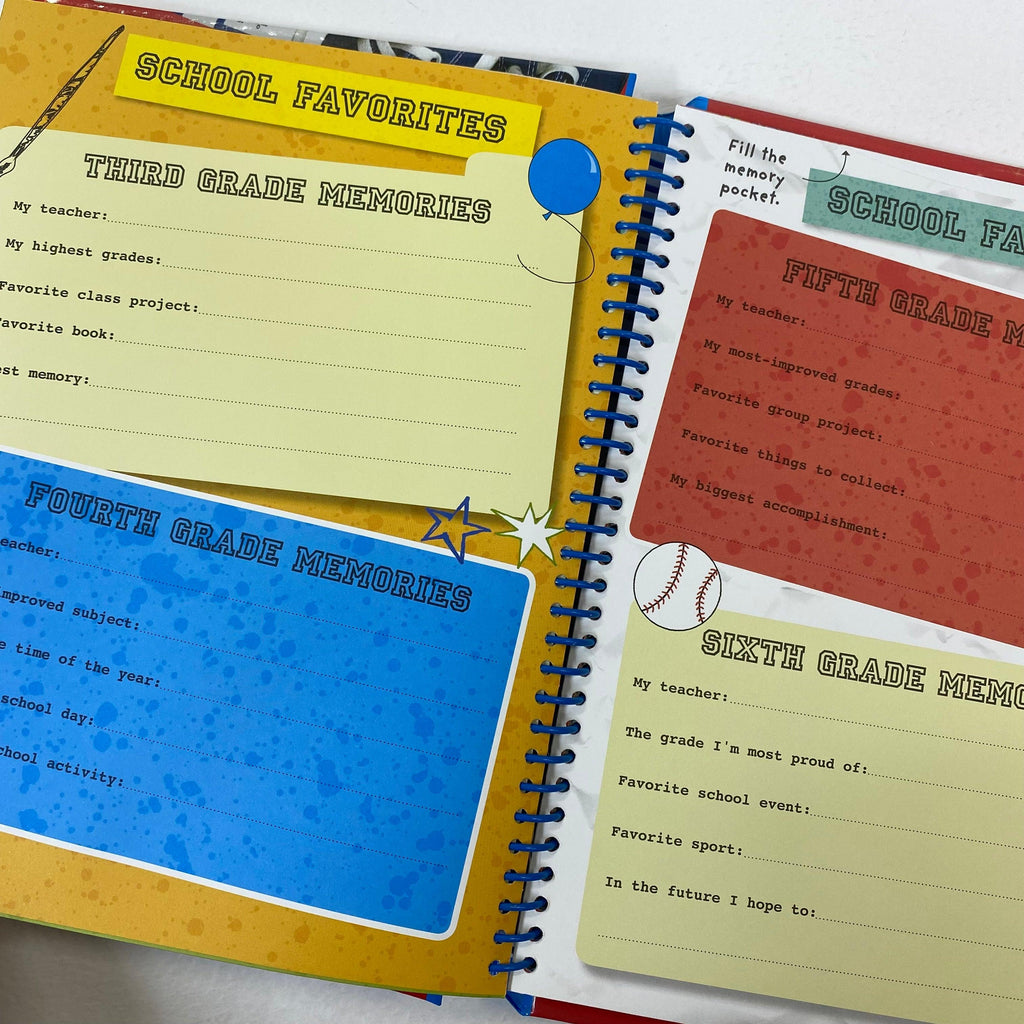 This fun scrapbook is a wonderful way for kids to keep their school memories fresh with fill-in prompts such as quizzes, activities, and answer sections to complete.