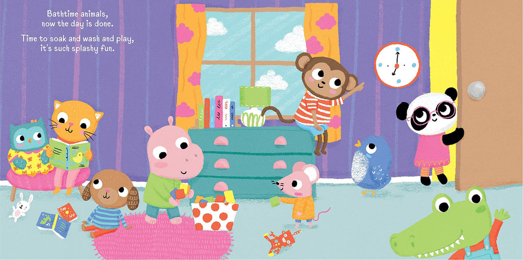 Jump into the tub and have a splash... it's time to get squeaky clean with these silly animals!