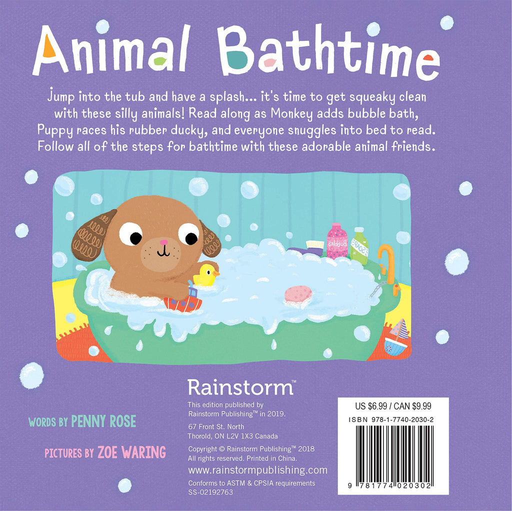 Read along as Monkey adds bubble bath, Puppy races his rubber ducky, and everyone snuggles into bed to read. Follow all of the steps for bathtime with these adorable animal friends. Written by Sara Conway and colorfully illustrated by Zoe Waring.