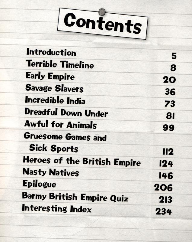 Readers can discover all the foul facts about the Barmy British Empire, including how a war started when a Brit was sitting on a stool, who wore a necklace made of 50 human skulls and why a British soldier used his own coffin as a wardrobe.