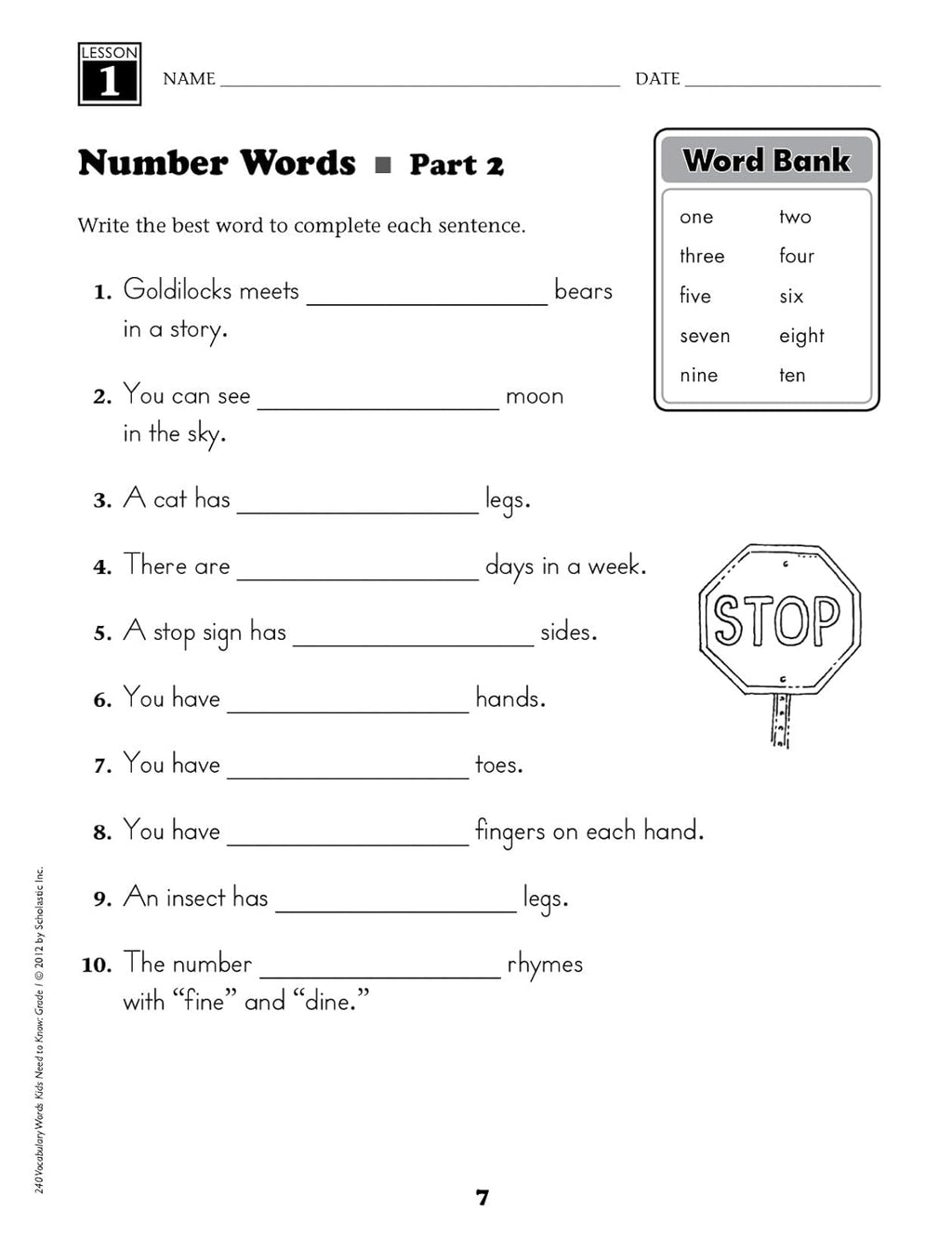 Scholastic Teaching Resources - 240 Vocabulary Words Kids Need to Know - Grade 1