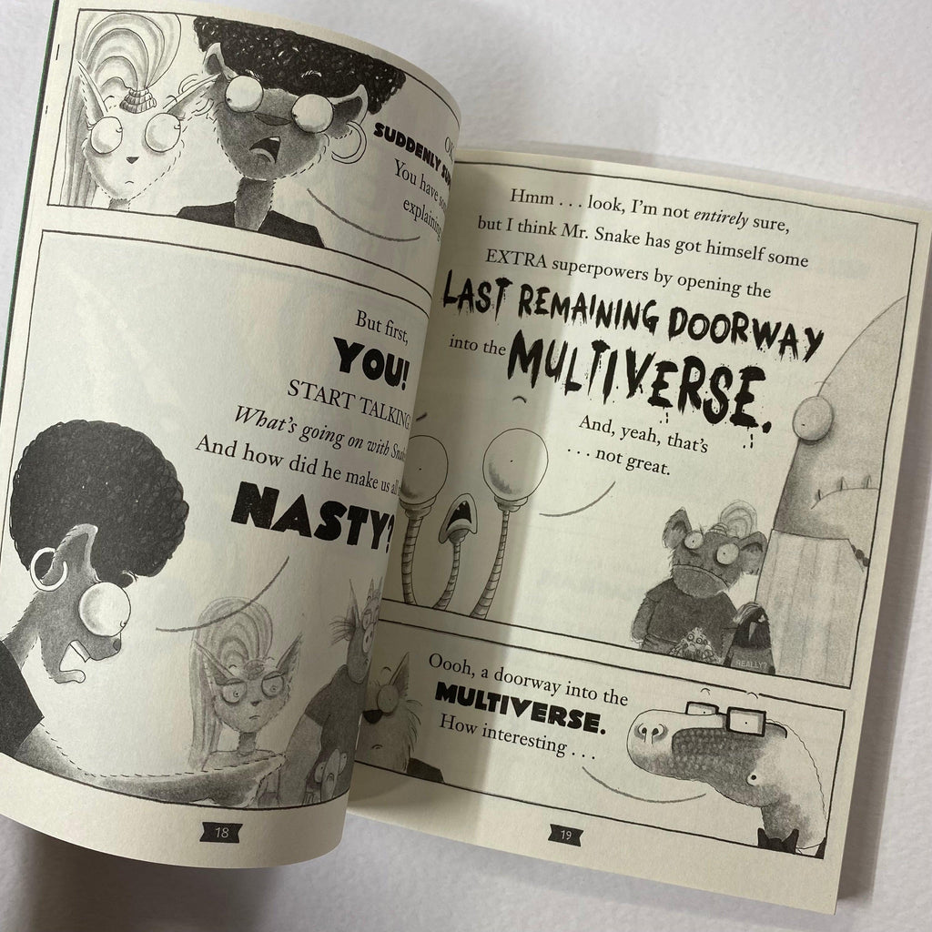 They may look like Bad Guys, but these wannabe heroes are doing good deeds... whether you like it or not! This New York Times bestselling illustrated series is perfect for fans of Dog Man and Captain Underpants. Seriously, WHAT is going on with Snake?! Terrible powers have been revealed! Evil allies have materialized! Inter-dimensional doors have opened! Shady-looking cloaks have been purchased!
