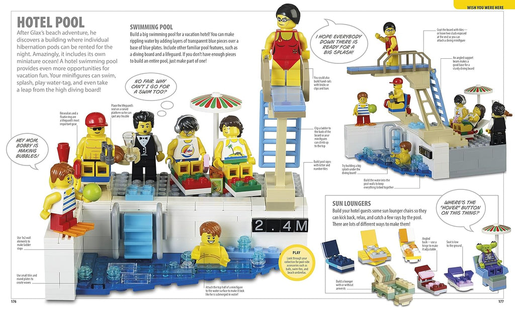 Find hundreds of fun, creative LEGO building ideas in DK's LEGO Play Book. Build a fairy tale cottage and an enchanted forest with trolls and a giant. Dive under water and create cute sea creatures and monsters of the deep. Go wild with safari animal builds, and create extreme sports vehicles for your LEGO minifigures. Or get spooky and build a mad scientist's lab and a haunted house!